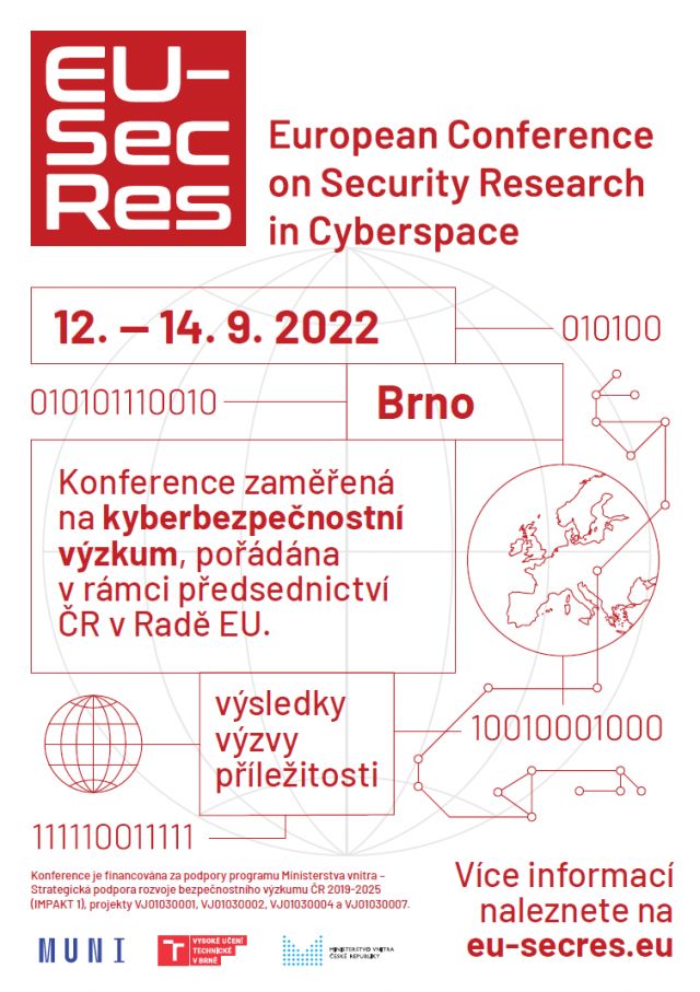 Aktuální výzvy i nové výsledky kyberbezpečnostního výzkumu budou programem vědecké konference European Conference on Security Research in Cyberspace. Kromě témat jako kyberkriminalita, bezpečná umělá inteligence, ochrana kritických infrastruktur státu či vzdělávání a prevence v kyberbezpečnosti nabídne i praktickou ukázku nejnovějšího vybavení v laboratořích. Mezinárodní konference, kterou pořádají u příležitosti českého předsednictví v Radě EU Masarykova univerzita, Vysoké učení technické v Brně a Ministerstvo vnitra ČR, se bude konat 12. až 14. září 2022.